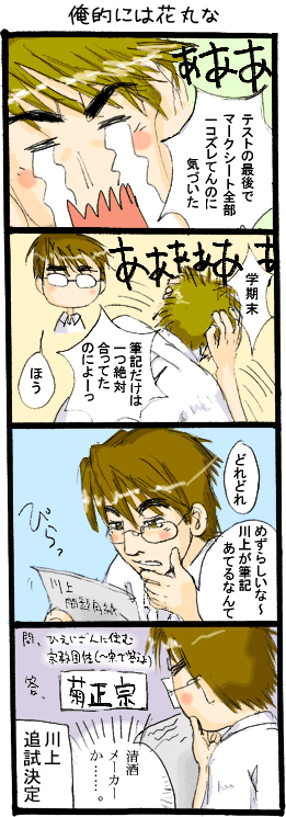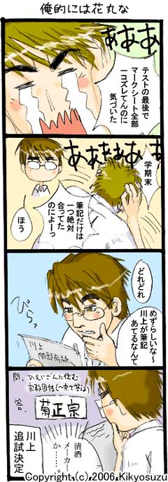 姉からは妹のやっている漫画シリーズ「土屋と川上」をリスペクト。ツッコミの土屋&ボケの川上が繰り広げるだるだるな学園ギャグのノリに、一読すれば癒されることうけあい。多分。