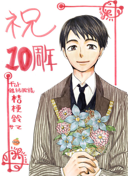 ネーブルより特大絵を頂きました。大ちゃん。 10周年記念に誰を描いてほしい? ときかれて咄嗟に思ったのが「劇団の全員」か「最初の一人」だったんだよね。そんなわけで彼に代表になってもらいました。ネーブルどうもありがとう! この優しい青年も銀縁眼鏡の歩みとともに10年選手になってます。個人的に目の再現率高いのが非常に気に入っている。しかもこのお洒落なロゴ入りスーツは自分のセンスじゃ出ない気がしました。
